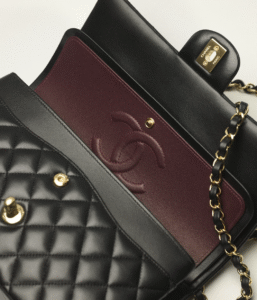 Glossy grained calfskin and gold-colored metal