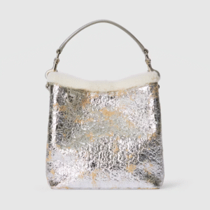 • Metallic silver leather trim