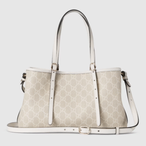 The new GG Emblem collection reinterprets the House’s history of elegance and craftsmanship. This tote bag features numbered notches on the adjustable top handles, inspired by the equestrian world.