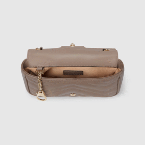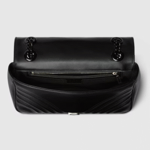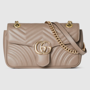 Embellished with the archival Double G logo, first introduced in the 1970s, the GG Marmont bag has established itself as a signature style of the House. The two capital letters of the style’s name refer to this emblem, recognizable by the partially overlapping hardware on the handbag’s front. Crafted from soft matelassé leather, the elegant handbag is evocative of Florentine craftsmanship.