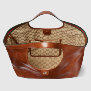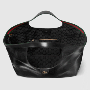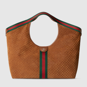 Continuing the spirit of reinvention, Gucci Giglio reinterprets the House’s emblematic GG motif with sumptuous materials and rich colors that speak to the season. Crafted in soft glossy leather, this capacious bag features the Web trim, and is complete with a detachable pouch.