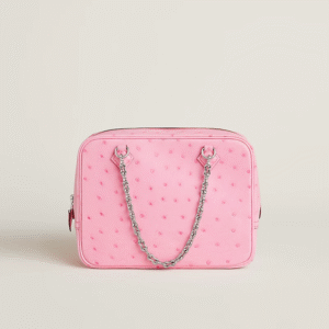 Boreale Ostrich Leather Shoulder Bag, featuring a handcrafted chain shoulder strap and a half-moon D-ring.